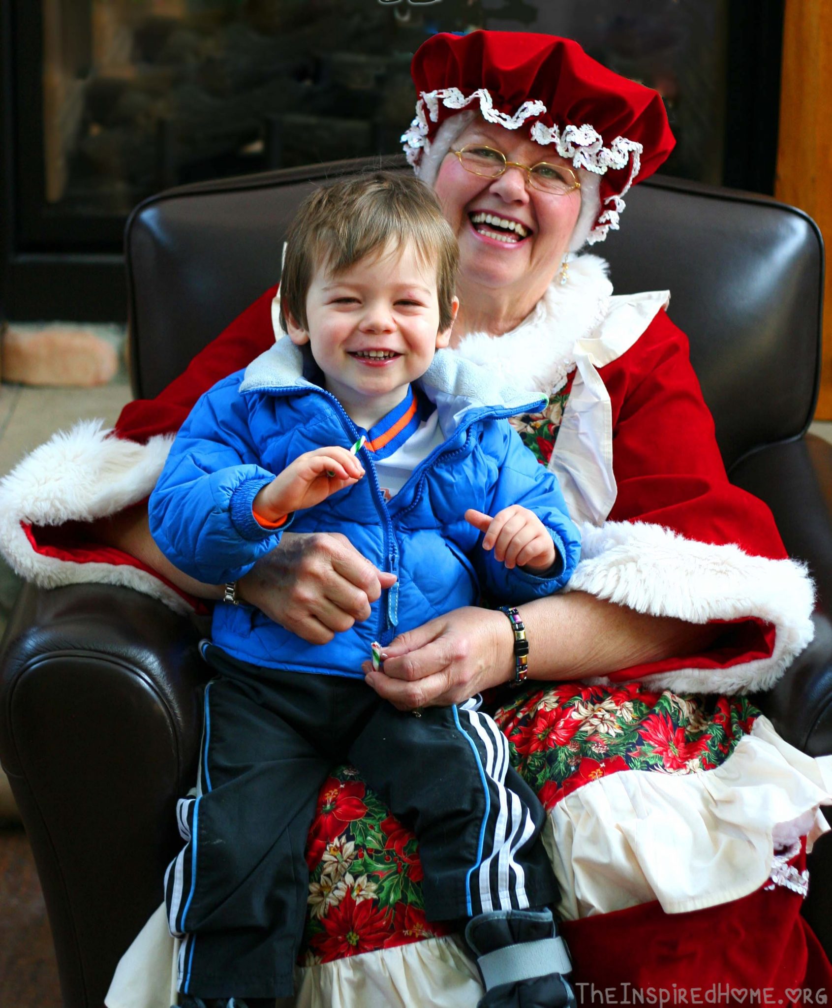 Mrs. Claus was also on hand with the Parent Link Center to aid in the decoration of cookies. She came over to say hi to Mr J and his eyes went as big as saucers. He enjoyed spreading icing all over his cookie then realized the icing was delicious. He finished it off with sprinkles. I love the holly sprinkles – what a great choice! Afterwards, we had a little chat with Mrs. Claus and sat on her lap for a photo opportunity and a candy cane.
